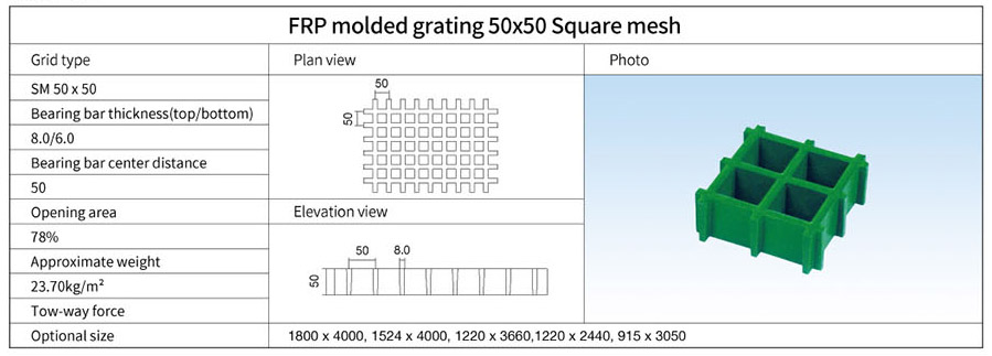 FRP Molded Grating 50x50 Square mesh