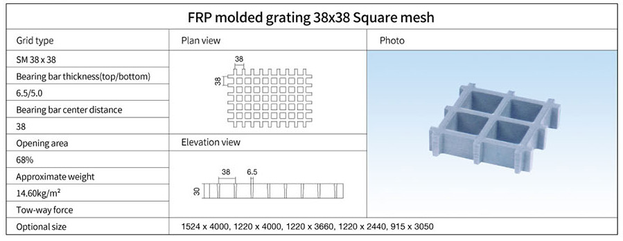 FRP molded grating 38x38 Square mesh