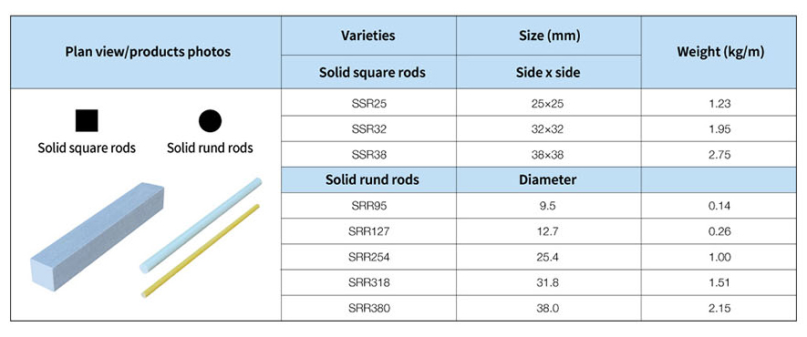 Solid square rods